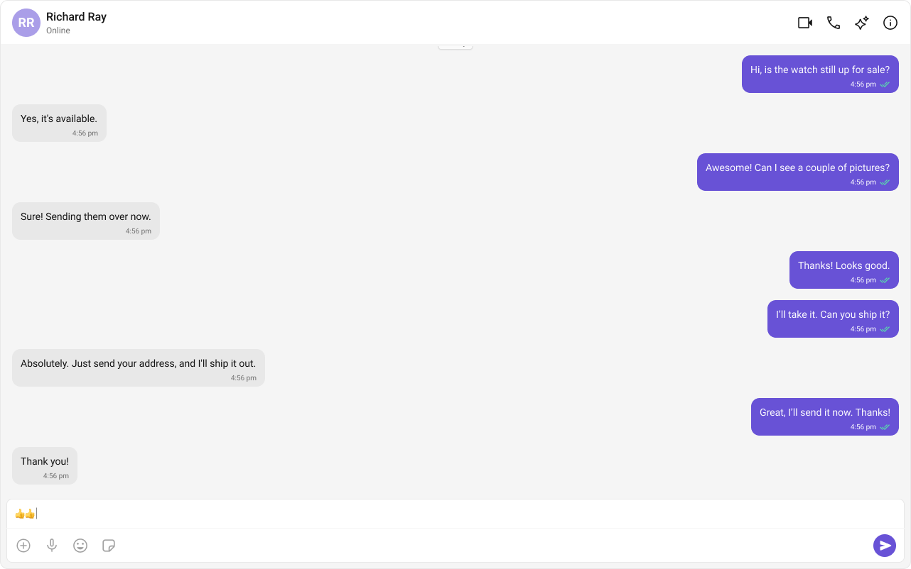 • Two-panel layout – Displays the conversation list on the left and the active chat window on the right.